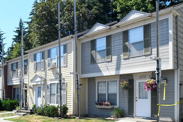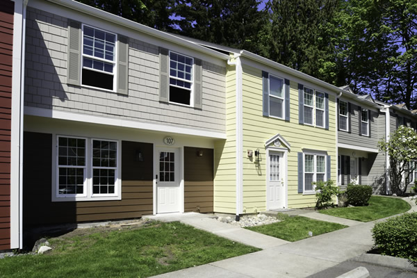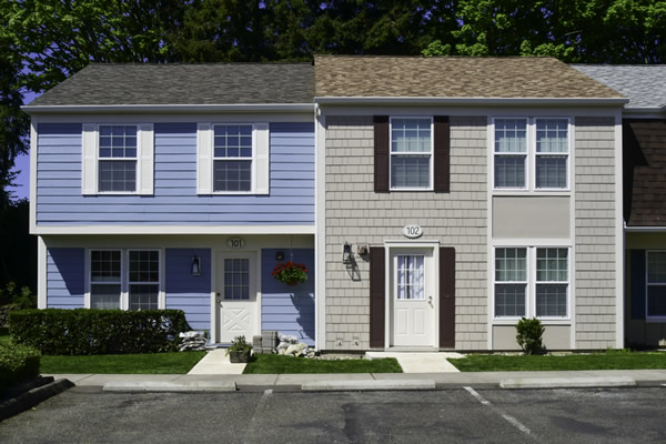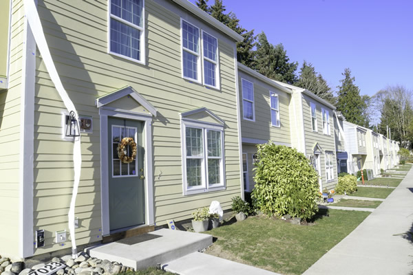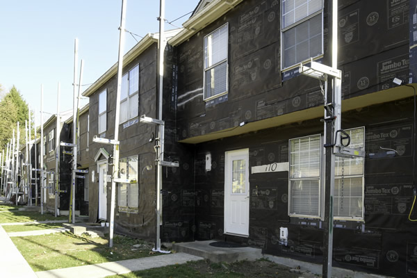 We reclad the front and backs with all types of Hardie siding; including lap, panel, shingle and shake. The different types of siding used were similar to what was existing, maintaining the row style housing's unique look.