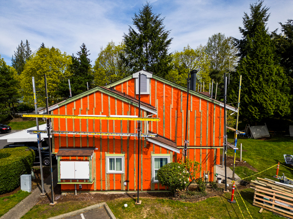 We finished this project in eight months, despite the large amount of wall sheathing that needed replacement. This project was one of our larger ones, with 142,000 sq ft of siding and 810 windows & sliding glass doors installed.
