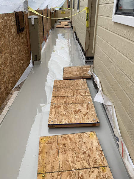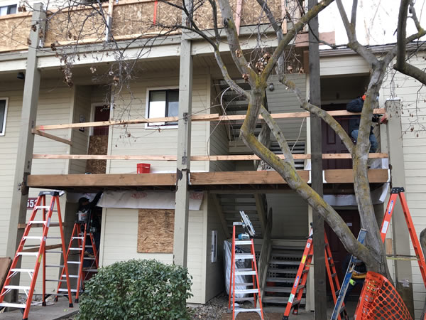 The easier half of the project was replacing large portions of siding through out the complex. The more challenging part of the project was demolishing and rebuilding the entry breezeways to the buildings while keeping the buildings occupied.